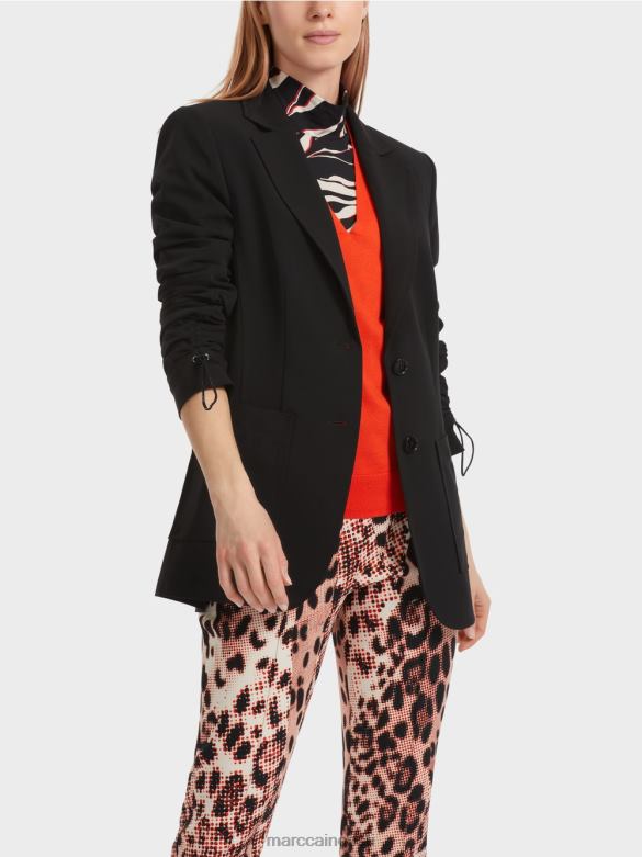 Tehnilisest Materjalist Bleiser. Keha Kallistava Kuju Loovad Printsessõmblused Ees Ja Taga Ning Täiendavad Rinnanoolemängud. Pilgupüüdja on Varruka Nöör, Mis Võimaldab Kogumist. Servadest Võib Leida Dekoratiivseid õmblusi.
