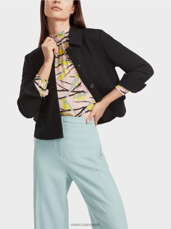 Viskoosi Ja Elastaani Seguga Bleiser. See Lühike Jakk Saavutab Kõrge Hinde Tänu Langenud Krae Ja Dekoratiivsete Klapitaskutega. Varrukate Lõhikud Allääres Annavad Moodsa Välimuse. Kujule Annavad Noolevisked Figuuri Kallistava Silueti. Jope Kinnitub Nööpidega.