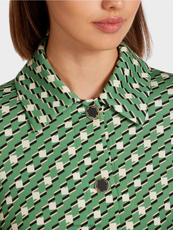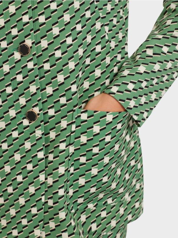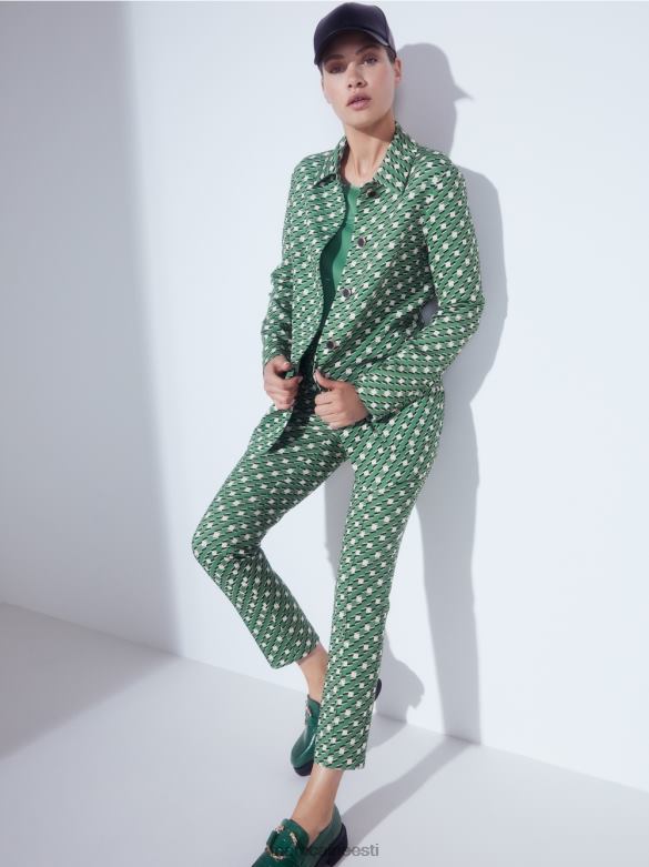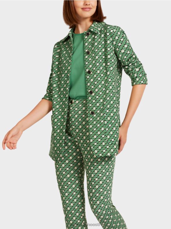 Kergelt Liibuva Lõikega Vabaaja Jope Ja Noolemäng. Geomeetriline Muster On Selle Jaki Esiletõst. Sellel On Suur Särgikrae Ja Taskud. Kujundust Täiendab Allääres Kitsenev Metallnööpidega Nööpnööp.