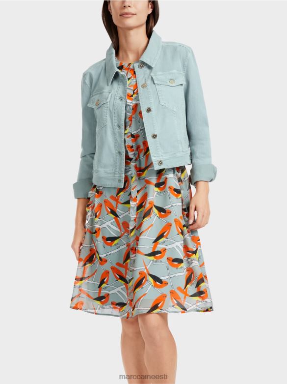 Uusim Venivast Orgaanilisest Puuvillast Valmistatud Teksajakk Jätkusuutlikkuse Märgiga "rethink-together". Sellel Teksajakil On Laia Krae Ja Klassikaliste Metallnööpidega Retro Stiil. Samuti On Rinnaklapiga Taskud Ja Küljetaskud Klassikalise Teksariie Välimusega. Välimust Täiendavad Allääres Nööbitavad Sakid. Ainult Elegantne Marc Caini Plaaster Tagaküljel Näitab, Et See On Hiljuti Valmistatud.