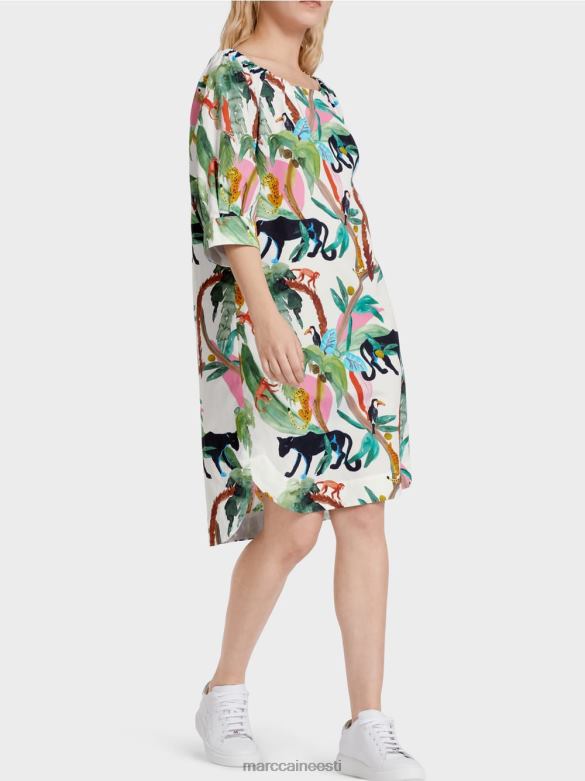Puuvillane Avar Suvekleit. Seda Vabalõikelist Kleiti Kaunistab Stiilne Kõikjal Džunglitrükk. Kaasas On Pikem Selja- Ja Küljelõhik. Suur ümmargune Kaelus On Mänguliselt Koondatud. Lõige On ümardatud Poolpikkade Raglaanvarrukatega, Millel On Laiad Kätised.