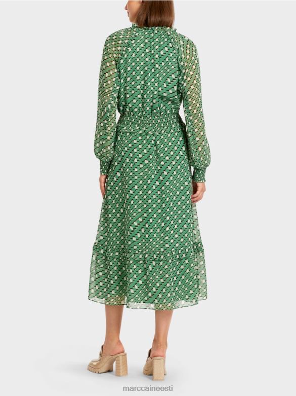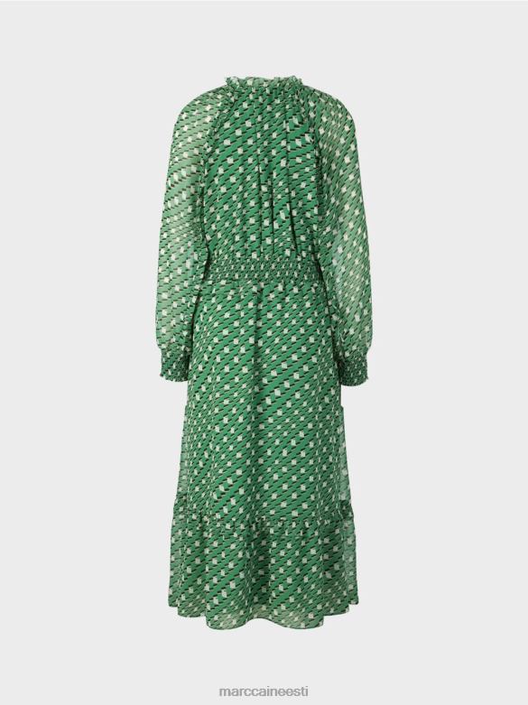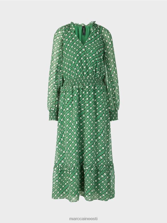 Naiselik Volangide Ja Ristkaelusega Kleit. Selle Kleidi Geomeetriline Muster On Kaunilt Kontrastiks Romantilise Siluetiga. See Uhkeldab Ristkaelusega Ja Mänguliste Volangdetailidega Raglaanivarrukatel, Krael Ja Alläärel. Smokeeritud Vöökoht Ja Venivad Kätised Täiustavad Romantilist Stiili.