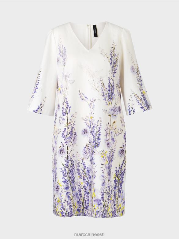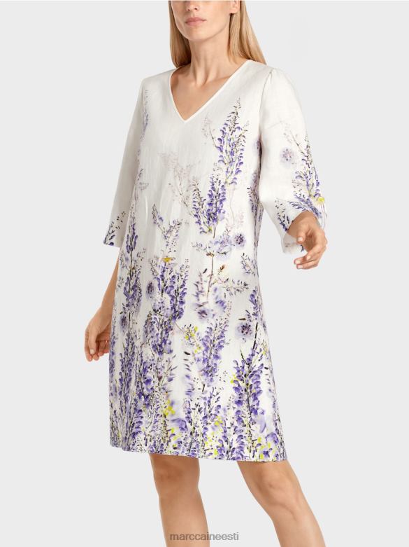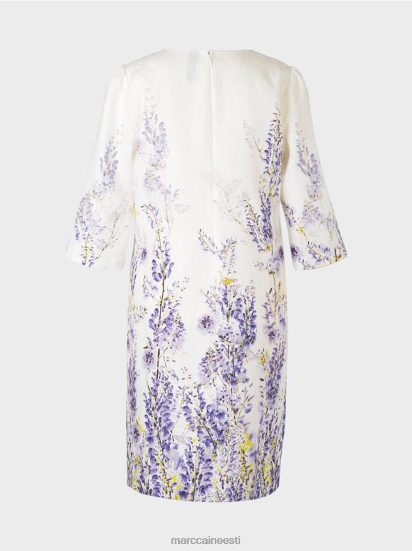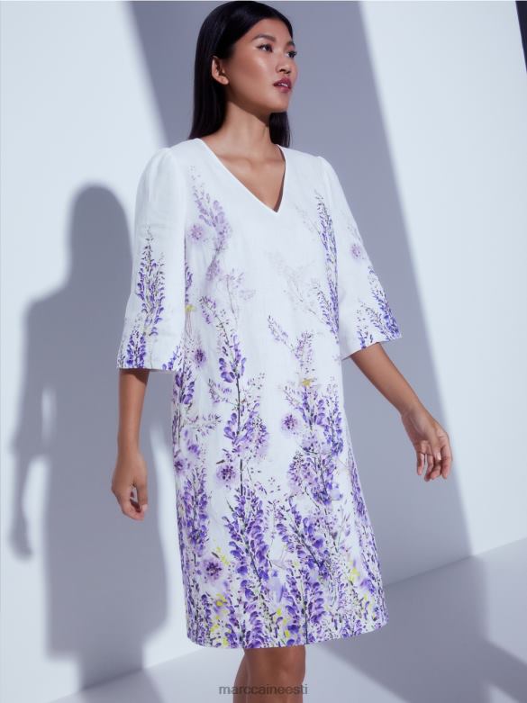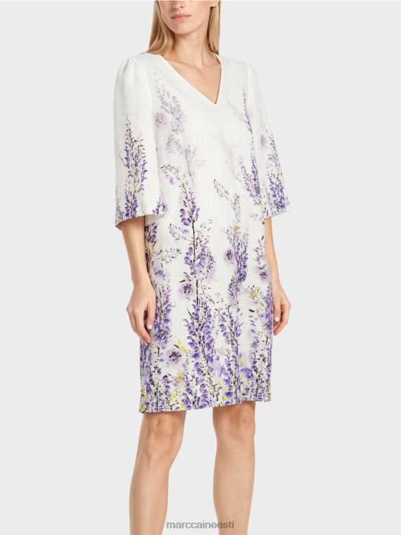 See Kleit On Valmistatud Kergest Jahedast Linasest. See On Laienev Ja Sellel On Laiad 3 4-pikkust Varrukat Elegantse Silueti Loomiseks. A-joont Rõhutab Alläär, Millel On Tihe Wisteria-trükk. Linane Kleit On V-kaelusega Ja Kinnitub Tagant Lukuga.
