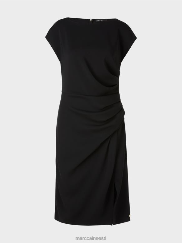 Asümmeetriliselt Kohandatud Kleit, Mis On Valmistatud Pehmest Materjalist. Mähisefekt Vasakul Küljel Annab Sellele Venivale Kleidile Sportliku Puudutuse. See On Figuuri Kallistav Koos Meeldiva Kõndimispiluga. Varrukateta Disaini Täiendavad Kaelus Ja Varjatud Tõmblukk Taga.