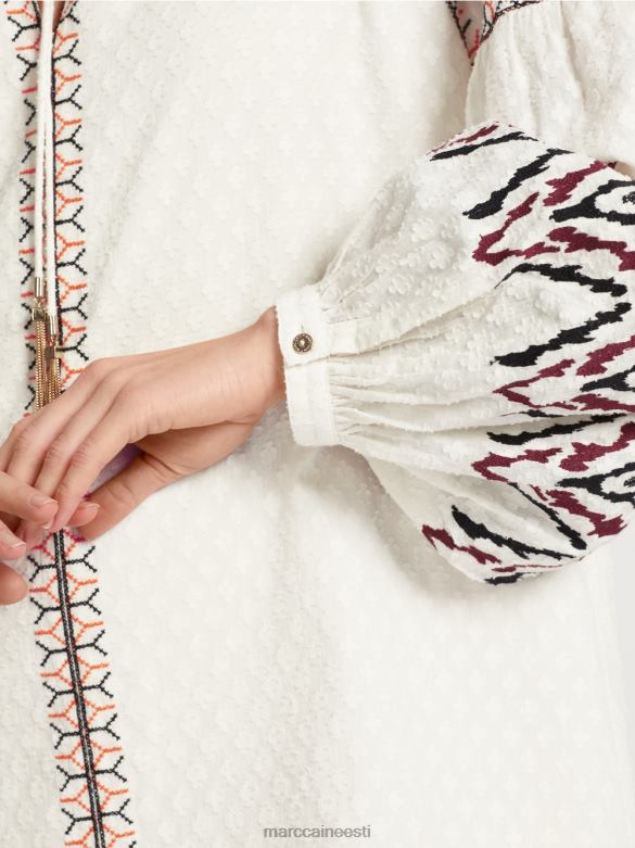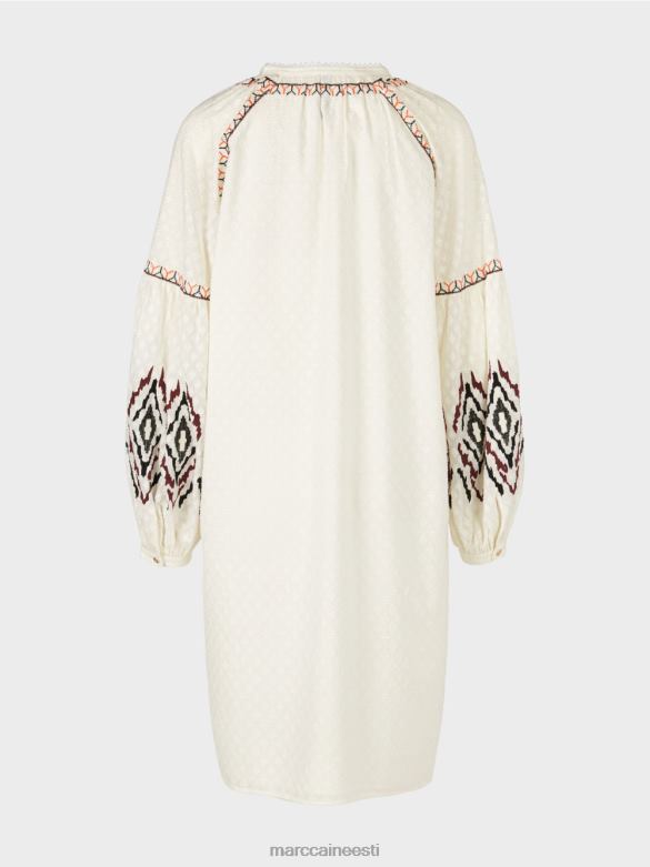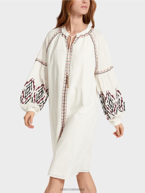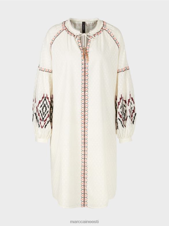 See Kleit On Valmistatud ülipeenest Puuvillasest Lillelise Kootud Mustriga. Kahekihiline Viimistlus Muudab Selle Läbipaistmatuks. õmbluste Ja Dekoltee Tikandid On Inspireeritud Etnilisest Disainist. Kokkutõmmatud Varrukad Vauvad Oma Stiliseeritud Tikitud Motiiviga, Mis Meenutab Ikat Värvimistehnikat. Kaeluse Saab Siduda Nööriga. Nööril On Peentest Metallkettidest Valmistatud Tutilaadne Dekoratiivelement.