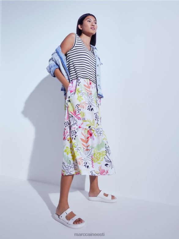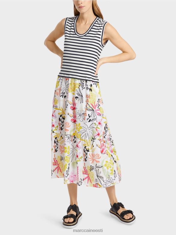 Puuvillast Ja Elastaanist Suvine Kleit. Olgu Meretriibud Või Romantiline Lillemuster – See Kleit ühendab Mõlemad Stiilses Mustrite Segus. Ja Kuigi Varrukateta, Keermestatud Kaelusega Topp On Figuuri Kallistav, Loob Voldiga Seelik Romantilise Laiuse Midi-pikkuses.