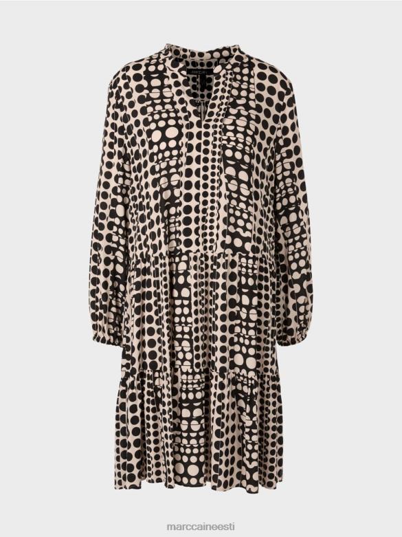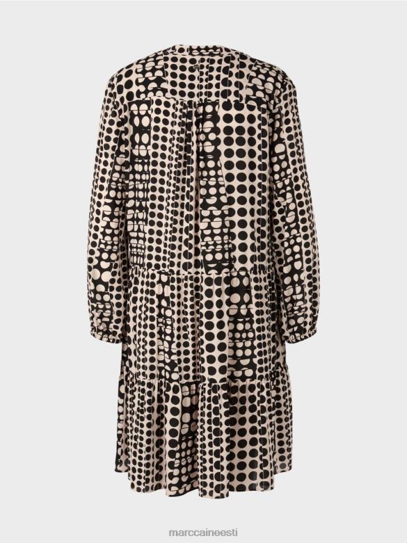 See Kleit On Op-art Mustriga Ja On Lõigatud 1970. Aastate Stiilis. Pihiku Lõdvus Annab Sellele Kaasaegse Välimuse Koos Detailide, Nagu Püstkrae, Pintucks Ja Mitmetasandiline Seelik, Kõrvutusega. Varruka Alläärel On Elastne ääris.