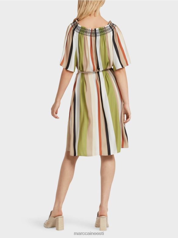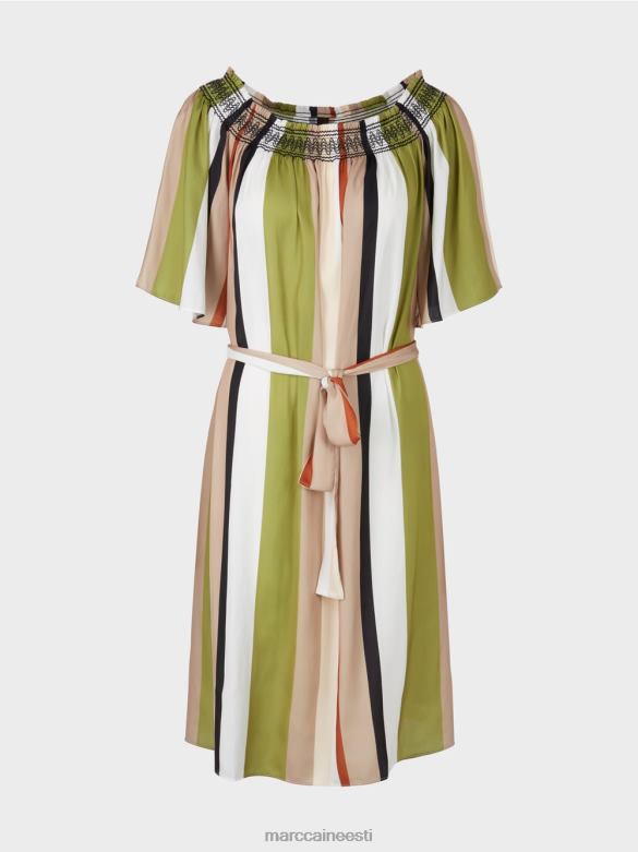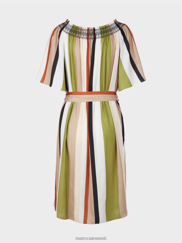 Selle Raglaani Kleidi Kained Vertikaalsed Triibud On Segunenud Etniliste Joontega. Kummist Smokil On Tikitud ääris Ja Nahkhiirevarrukad On Lahti. Kleit On Pehmelt Drapeeritud Ja Vöökohalt Kokku Tõmmatav.