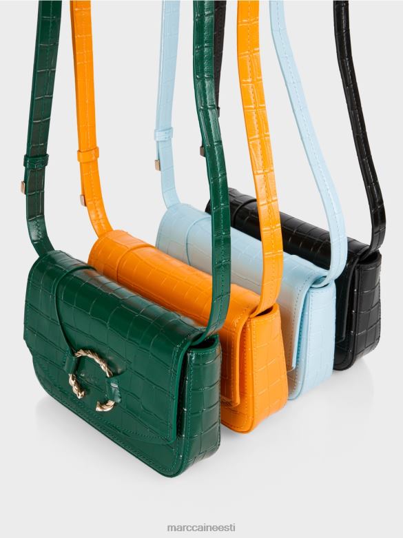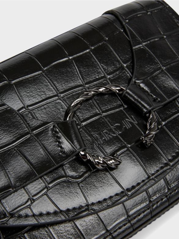 Kvaliteetne Ehtsast Veisenahast õlakott Dekoratiivse Rõngaga. See Keskmise Suurusega õlakott Muutub Tänu Krokodilliefektile Hinnatud Aksessuaariks. Dekoratiivne Keerdmetallist Rõngas Raamib Diskreetselt Reljeefset Mc-kirja. Klapp On ümardatud Ja Kinnitub Trukiga. Sees On Veel Lukuga Sahtel. õlarihm On Reguleeritav.