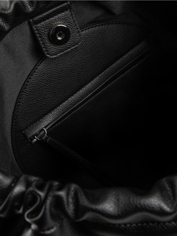 Ostja On Suhteliselt Kõrgel Ja Laia Põhjaga. See Pakub Palju Ruumi Ostlemiseks. See On Vooderdatud Puuvillaga Ja Sellel On Lukuga Sisemine Sahtel. Seda Saab Kinnitada Magnetklambriga. Koti Põhja Kaitsevad Metalljalad. Dekoratiivseks Elemendiks On Käepide, Mis On Keerdunud Nagu Nöör. Osa Käepidemest Koosneb Metallketist, Mille Kaudu On Põimitud Pael.