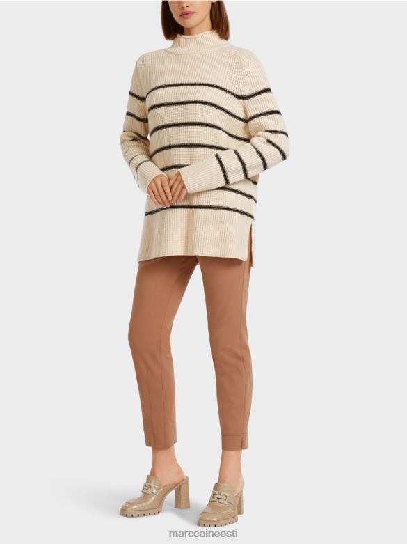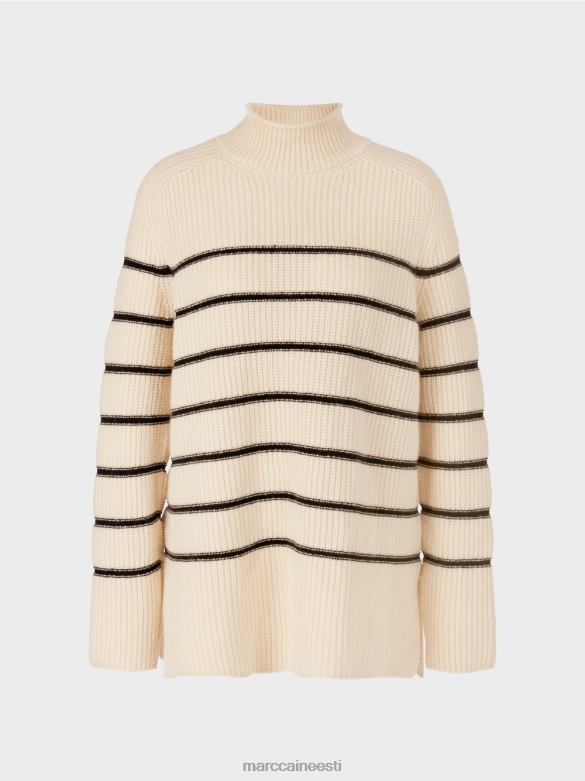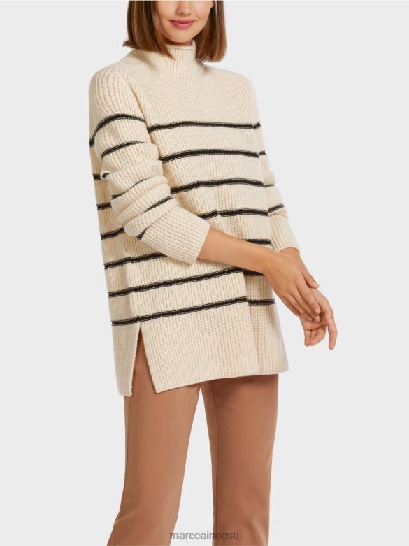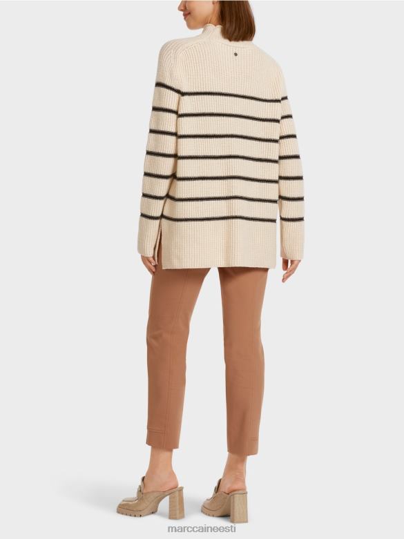 Lõhikute Ja Kõrge Kraega Kootud Kampsun. Kootud Kampsun Demonstreerib Sportlikku Triibumustrit. Selle Laia Siluetti Rõhutavad Külgmised Pilud. See Toode On "kootud Saksamaal". Lõng Kootakse Ultramoodsatel Kudumismasinatel Ja Läbib Tekstiili Viimistlusprotsessid Meie Ruumides Saksamaal. üksikud Tükid, Nagu Varrukad, Esiosad Jne, On Kokku õmmeldud Meie Partnerettevõtete Poolt Euroopas.