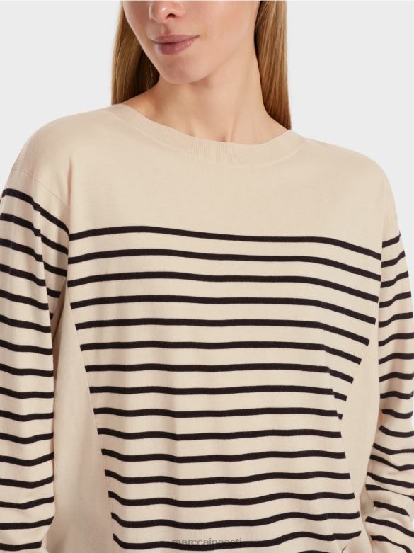 Oma Plokkide Triibuliste Vahetükkidega Meenutab Villane Kampsun Bauhausi Stiilis Esteetikat. Paadi Kaelus On Samuti Geomeetriline. Vastandage Seda Naiselike Aspektidega, Nagu Kimono Varrukas Ja Pehme Voolav Drape. Kampsun On Kootud Viskoosi- Ja Kašmiirisisaldusega Kiust Ning Kannab Jätkusuutlikkuse Silti "mõtle Koos ümber".