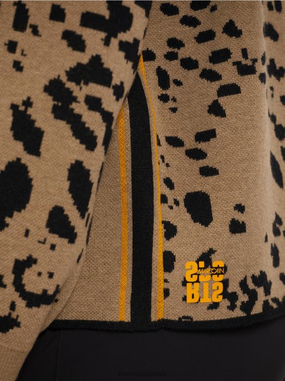 Muljetavaldav Villa Ja Kašmiiri Segust Kampsun. Sellel Kootud Kampsunil On Mitu Esiletõstmist Ja See Paistab Silma Oma Kõikehõlmava Leopardist Disainiga. Külgedel Olevad Kontrastsed Punutised Lisavad Veetlust. Laia Kaeluse Ja Varrukatel On Ka Triibuline Muster. Langenud õlad Ja Kitsas Musta Alläär Täiustavad Avarat Siluetti.