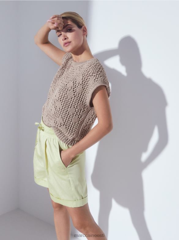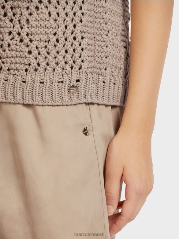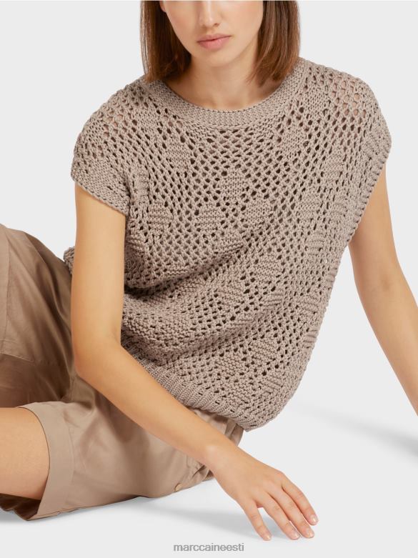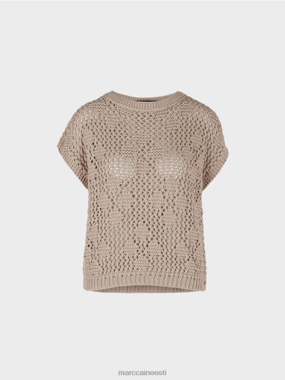Allalangenud õlgadega ülisuur Kootud Topp. Sellel On Võrgutaoline Tagakülg, Mille Vahel On ühtlaselt Paigutatud Teemandid. Sirget Kuju Rõhutavad Soonikkoes Kootud Küljeõmblused Ja Käeaugud.