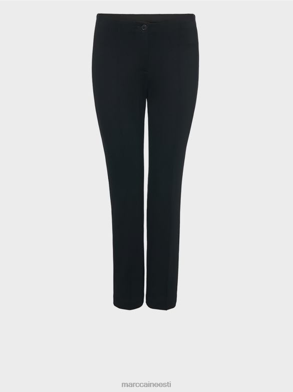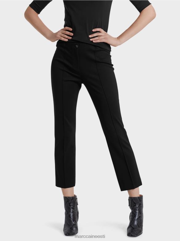 Kitsad 7/8 Püksid, Millel On Triigitud Korts Ja Elastne Vöökoht. Püksid On Sirge Säärega Ning Kinnituvad Eest Luku Ja Nööbiga.