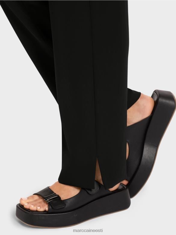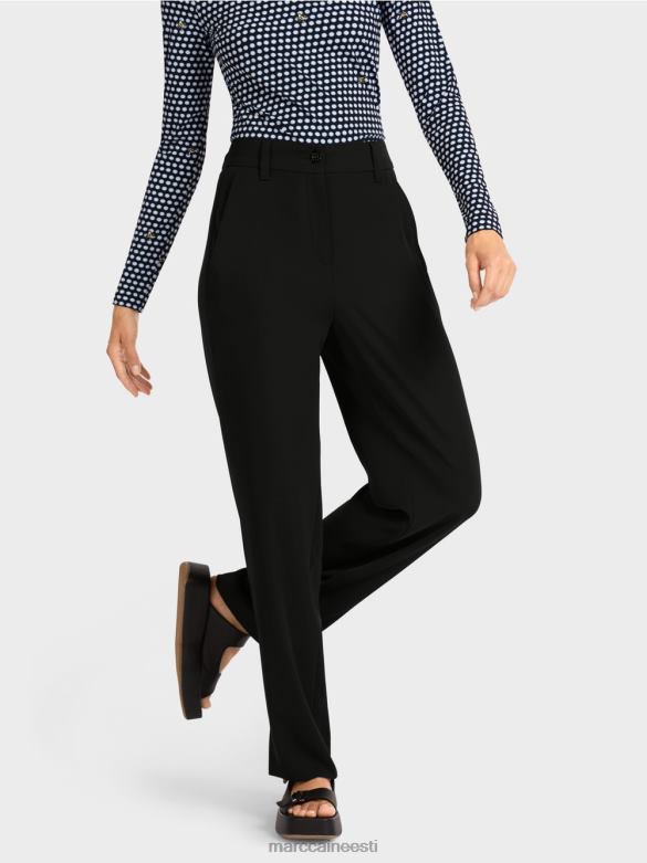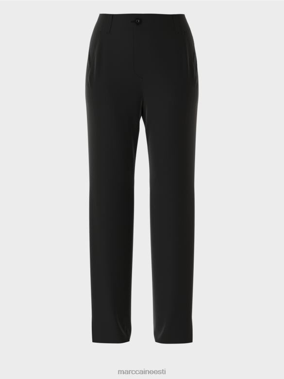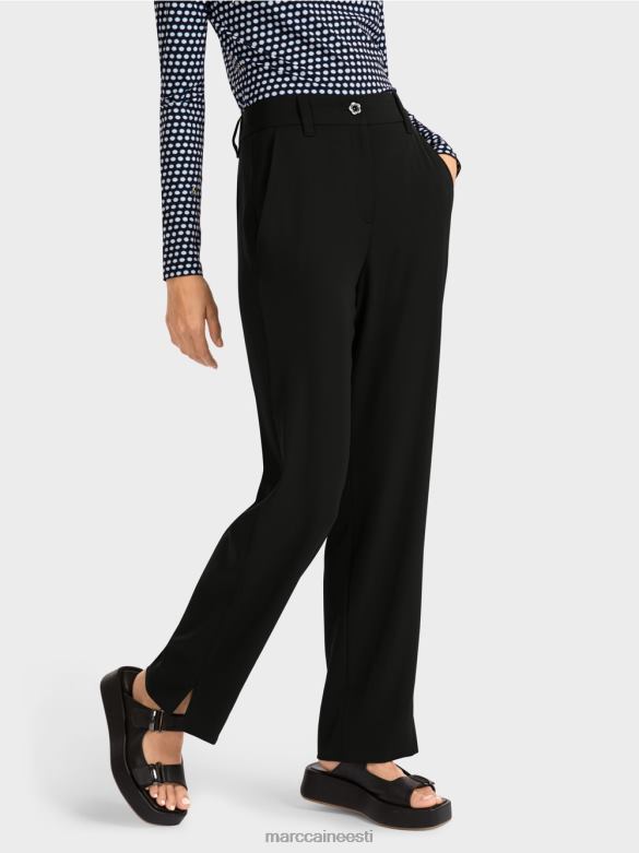 Klassikaline Lõige Ja Pehmelt Drapeeriv Materjal Muudavad Need Püksid Eriti Elegantseks. Kõrge Serv Ja Külgmised Lõhikud Vähendavad Sääre Laiust. Elastne Seljaosa Tagab Pükste Kandmise Mugavuse. Pükstel On Neli Taskut: Ees Kaks Küljetaskut Ja Taga Taskud.