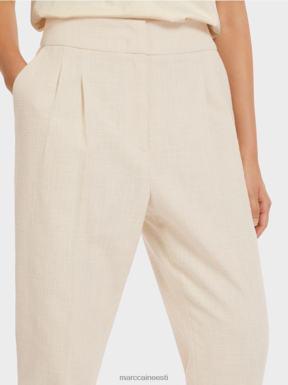 Klassikalised Puuvillased Püksid Pressitud Kortsu Ja Küljetaskutega. Need Suvepüksid On Laia Säärega. Need On Valmistatud Linase Välimusega Puuvillasegust, Mistõttu On Neid Eriti Mugav Kanda. Püksid Kinnituvad Kahe Haagi Ja Lukuga. Kaks Külgmist Lõhikutaskut Ja Vöötaskut ümardavad Disaini.