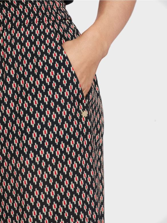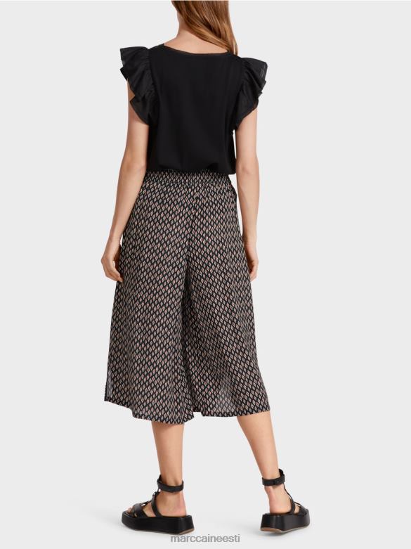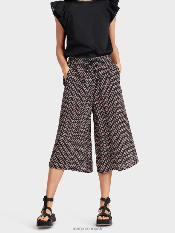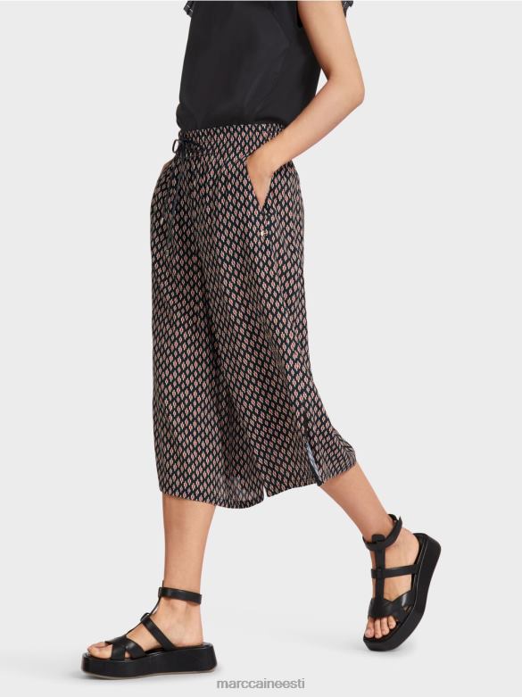 Kolmveerandpikkused Püksid On Laia Lõikega Ja Valmistatud Voolavast, Kergest Viskoosist. Pikad Küljelõhikud On Piiratud Kitsa Pitsiga Ja Mugaval Vöökohal On Pingutusnöör, Mis Tagab Täiusliku Istuvuse. Väike Logosilt Kotil Lisab Erilise Aktsendi.