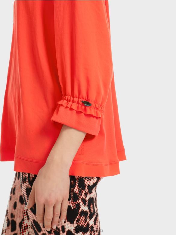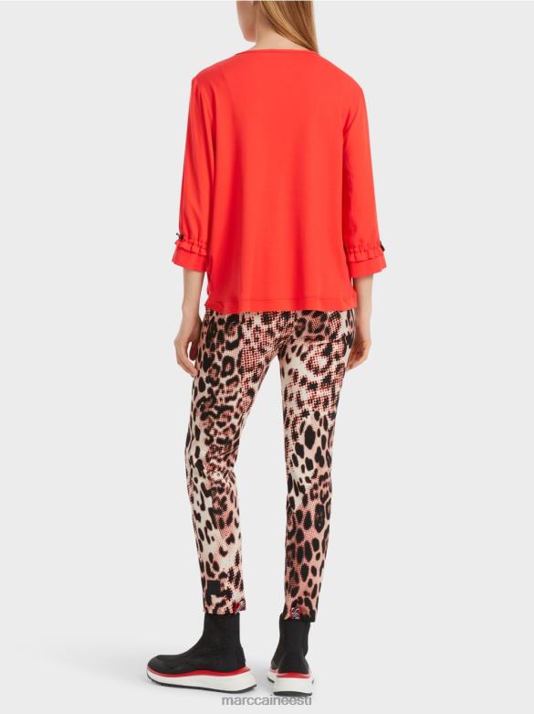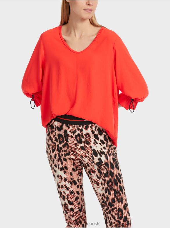 Pluusil On A-kujuline Siluett. Allääre On Rõhutatud äärisega. Disain Põhineb Põneval Materjalide Segul: Seljaosa On Valmistatud Soonikust Jersey-st, Esiosa Ja Varrukad Aga õrna Tekstuuriga Kangast. Viimistletud, 3/4 Varruka Töötlus, Mille Laiust On Allääres Elastse Riba Abil Vähendatud. Tulemuseks On Volangidega Viimistlus, Mille Alla On Kaetud Soonikuga Trikoo – Nagu Mansett.