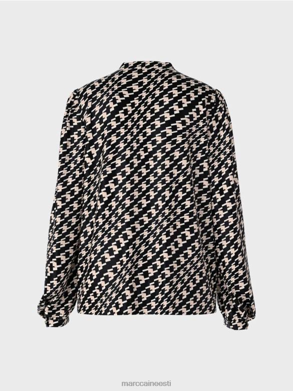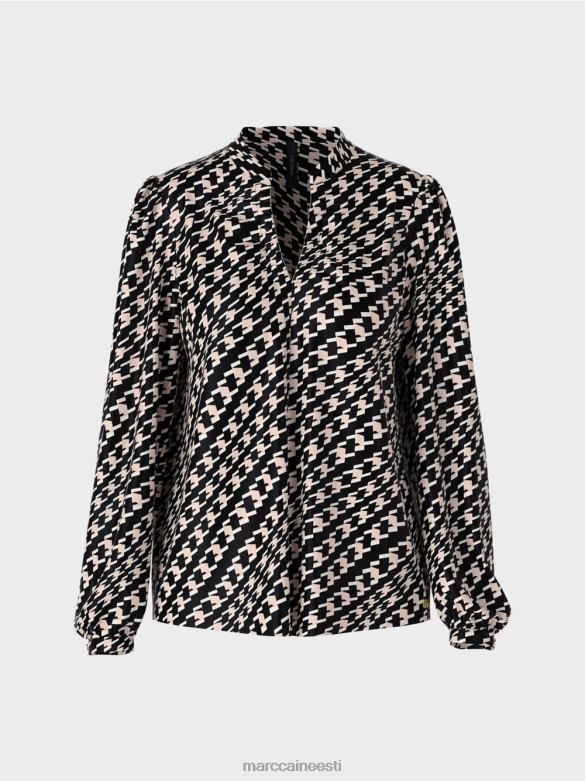 Avara V-kaelusega Ja Keskmise õmblusega Pluus. Geomeetriline Muster Annab Sellele Pluusile Huvitava Välimuse. See On Vaba Siluetiga Ja Sellel On Keskmine õmblus. Kitsad Metallist Nööbiga Mansetid Ja Väike V-kaelusega Püstkrae Rõhutavad Pluusi Disaini.