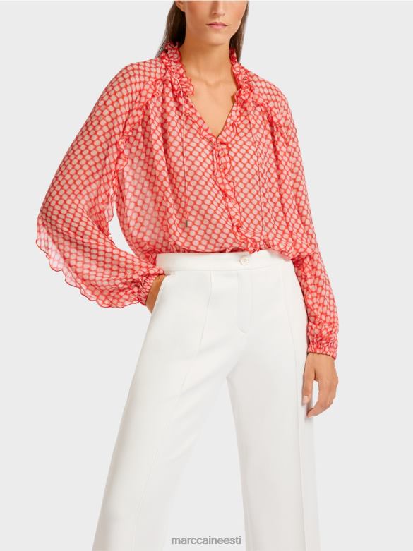 Ilus Lõdvalt Drapeeritud Viskoosist Pluus. Volangid Krael, Varrukaõmblused Ja Lühike Nööbikinnitus Annavad Sellele Pluusile Romantilise Hõngu. Avaras Stiilis. Kaasas On Venivad Varrukaääred. Mc Logonööbid Ja Nöör Krae Juures Rõhutavad Naiselikku Disaini.