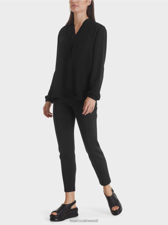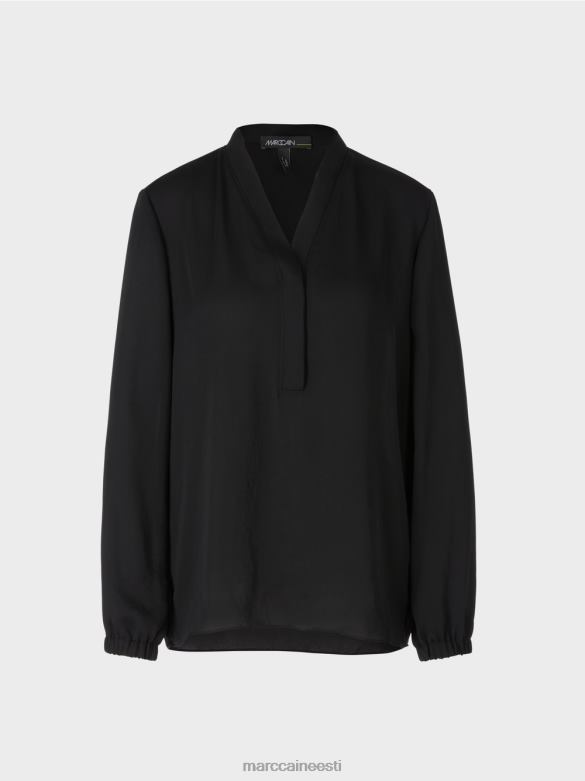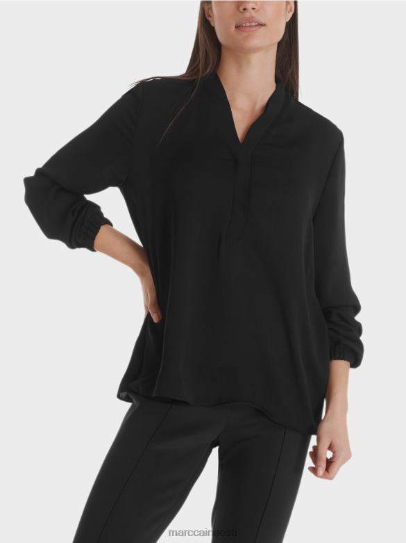 Pikkade Varrukatega Lihtne Pluus Voolavast, Kergelt Sädelevast Mikrokiust Kvaliteedist. Laia Pluusi Kaelus Kaunistavad Kahekordsed Ja Lõigatud Voldikud, Mis Annavad Disainile Naiseliku Ilme. Mansettidele On Lisatud Elastne Riba.