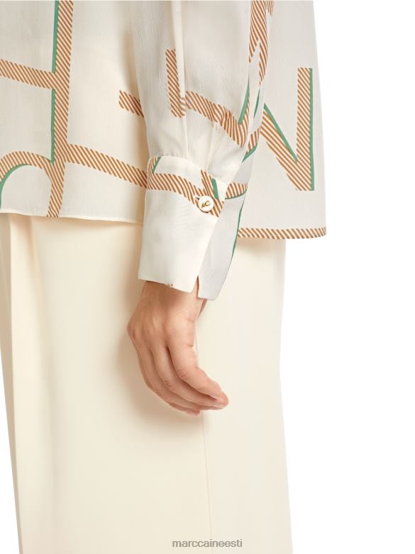 Avar Pluus Varjatud Nööbikinnitusega. Sellel Pluusil On Väike Siidisisaldus. Sellel On Ekstravagantne Mc-kiri, Mis On Ka Kaetud Metallist Logoga Nuppudel. Peidetud Nööbikinnitus Täiustab Elegantset Viimistlust. Pluus On Klassikalise Särgi Stiilis Disainiga, Millel On Avar Siluet.