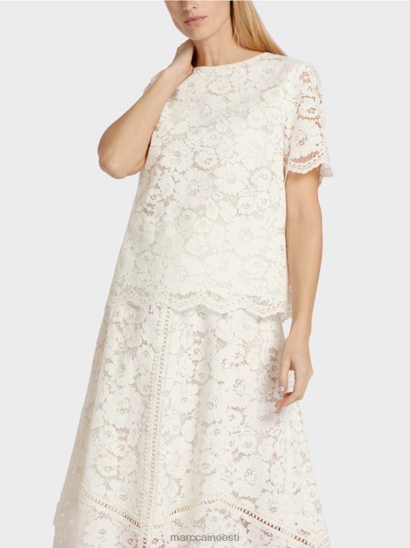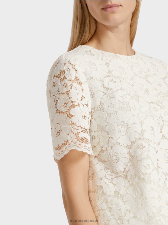 Selle Pluusi Lihtne Lõige Meenutab 1950. Aastate Stiili: Sirge Lõikega, Pingul Kaelus Ja Lühikesed Varrukad. Lilleline Pits On ääristega Viimistletud. Osaline Vooder Muudab Pluusi Läbipaistmatuks. See Kinnitub Tagant ühe Nööbiga.