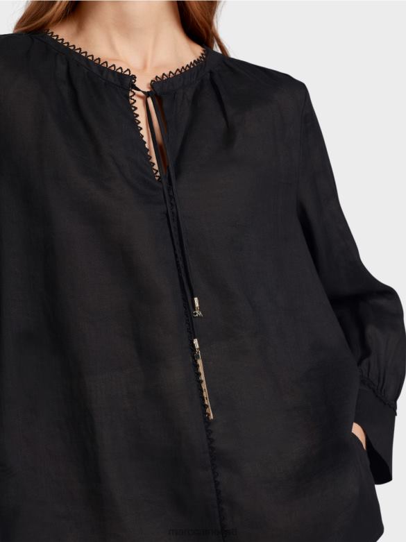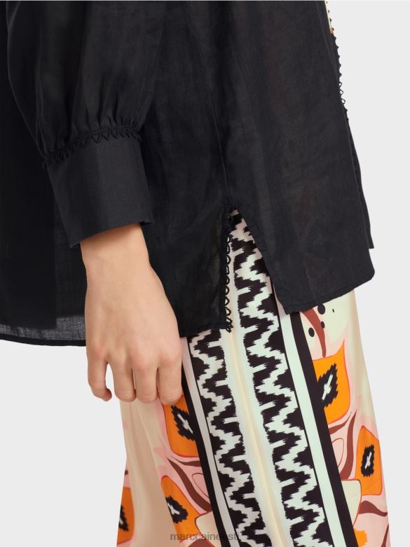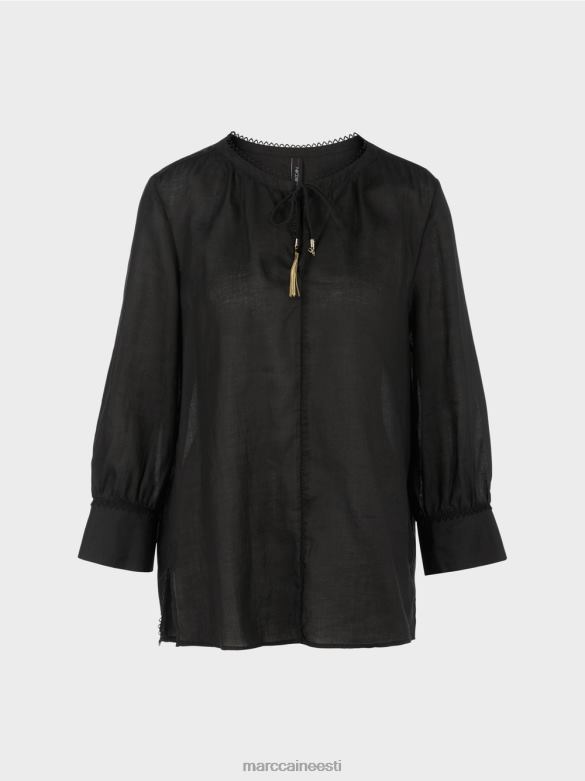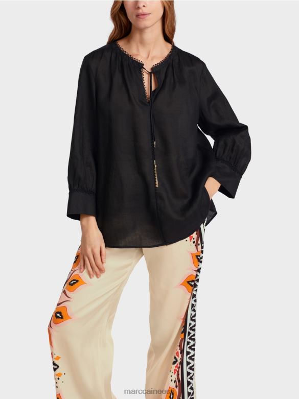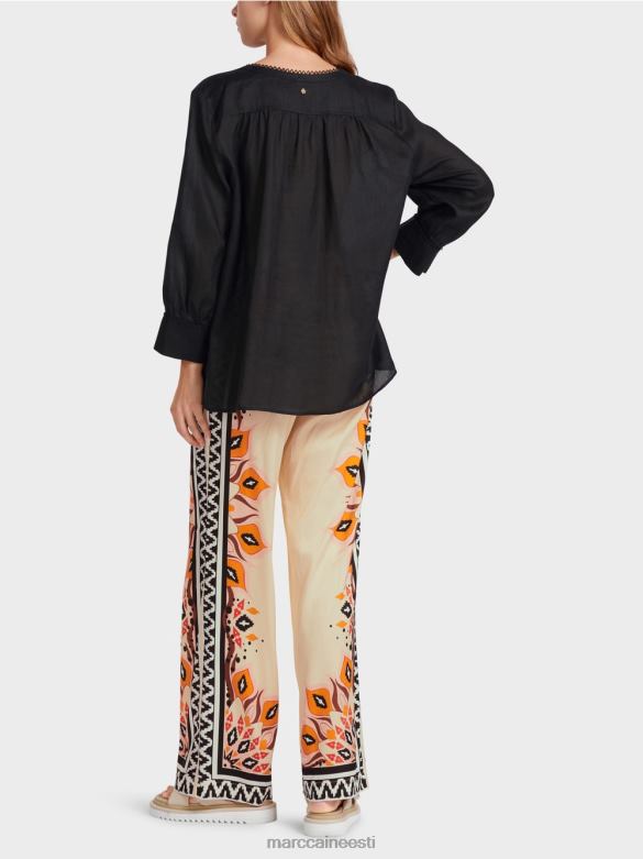 See Pluus On Valmistatud Hiina Murust Ja On Katsudes Pehme Ja Kuiva Tundega. See On Kergelt Laienenud. Abaluu On Taha Koondatud, Andes Sellele Veidi Rohkem Volüümi. Pingutusnöör Ja Toon-toonis Pitskaunistus Kaelakaarel Annavad Sellele Etnilise Hõngu. Nööripaelad On Viimistletud Dekoratiivsete Metallelementidega: Metallkett-tutt Ja Marccain Initsiaalid.