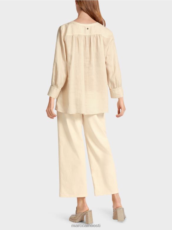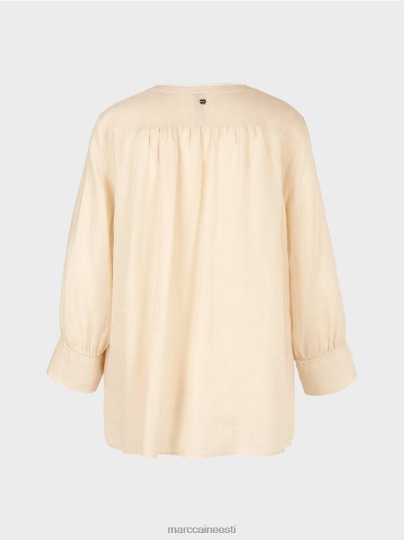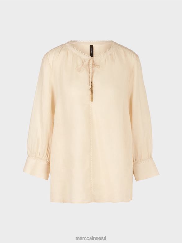 See Pluus On Valmistatud Hiina Murust Ja On Katsudes Pehme Ja Kuiva Tundega. See On Kergelt Laienenud. Abaluu On Taha Koondatud, Andes Sellele Veidi Rohkem Volüümi. Pingutusnöör Ja Toon-toonis Pitskaunistus Kaelakaarel Annavad Sellele Etnilise Hõngu. Nööripaelad On Viimistletud Dekoratiivsete Metallelementidega: Metallkett-tutt Ja Marccain Initsiaalid.