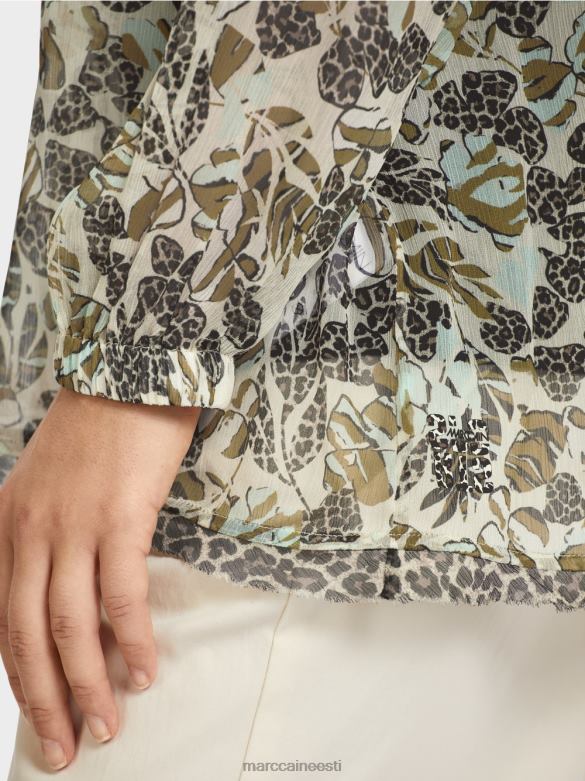 Viskooskrepist Lihtne Pluusi Stiilis Topp. Täius Tekib Taga, Mis On Kogutud Sadula õmblusest. Fantaasiarikas Muster On Inspireeritud Taimestiku Ja Loomastiku Motiividest. Leopardimustrilised ääristused Nööbil, Kaelusel Ja Alläärel Annavad Disainile Stiilse Viimistluse.