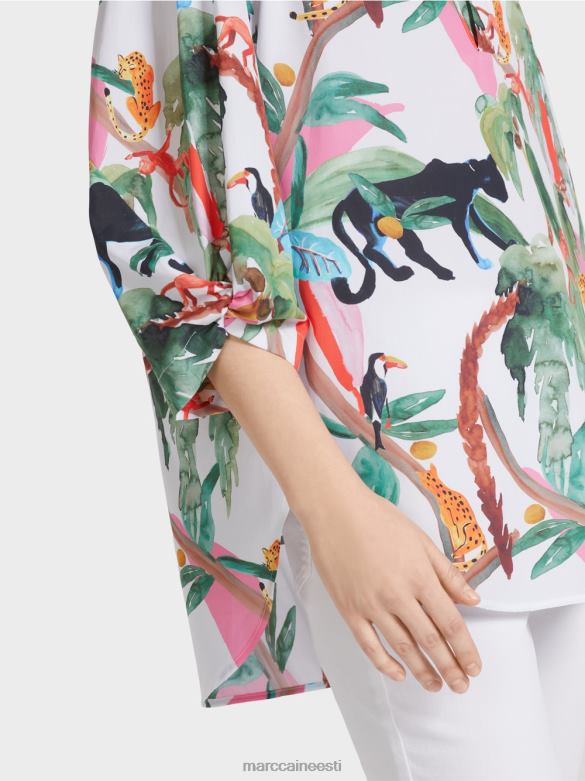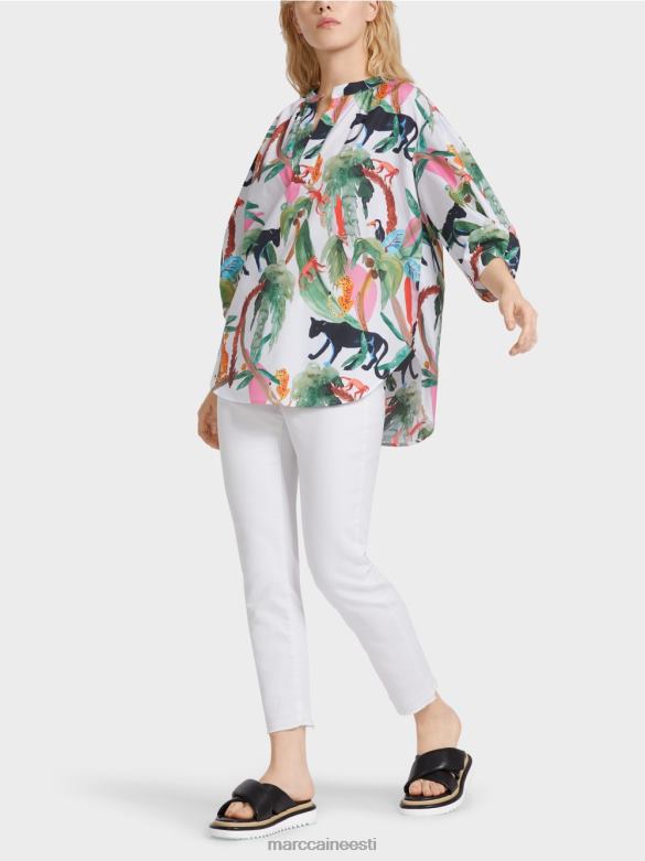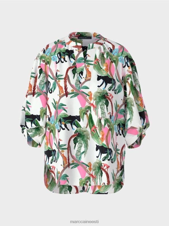 Sirge Lõikega Avar Puuvillane Pluus. Džungliteemaline Ilus Loomakujundus Annab Sellele Pluusile Meeldiva Välimuse. Sellel On Juhuslik Siluett Ja Pikem Seljaosa, Millel On Külgmised Pilud. Laiad Varrukad On Allääres Mänguliselt Kokku Tõmmatud. Välimust Täiendab V-kaelus Koos Väikese Püstkraega.