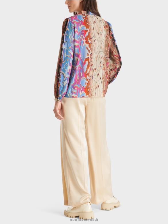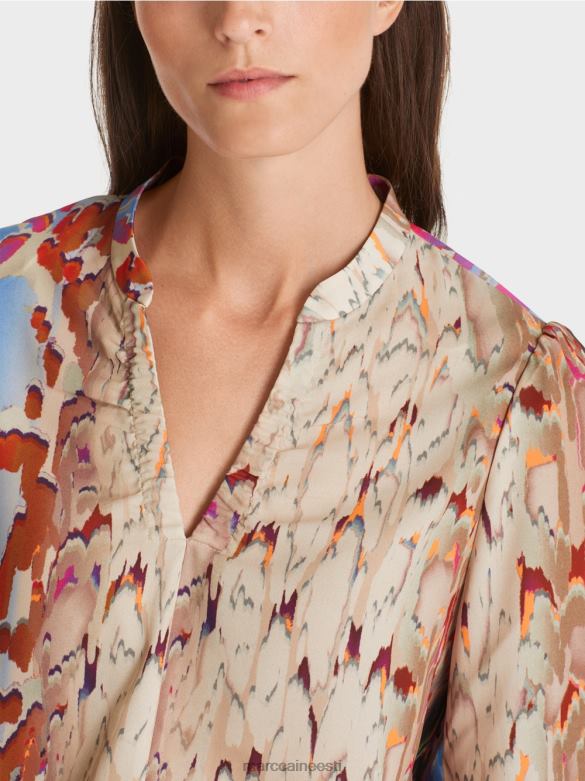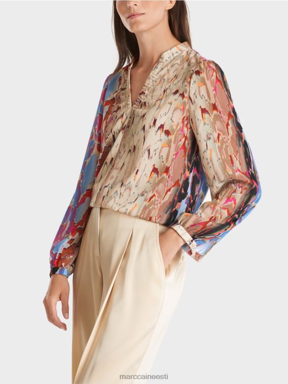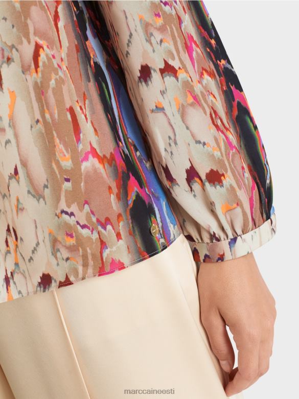 Unikaalse Trükiseguga Lõdvestunud Lõikega Pluus, Mis On Valmistatud Kergest Ja õhulisest Mikrokiust. Pluusi Kaunistavad Kaunid Naiselikud Detailid, Nagu Näiteks: Kumerad õlad, Kaeluse Juures Kergelt Kokkutõmbuva Efektiga Kokkutõmmatud Elastik Ja Nööpidega Kätised.