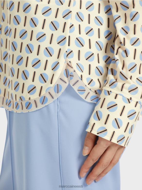 Avara Lõikega Pluus Esitleb End Põneva Trükiga Ja On Valmistatud Voolavast Materjalisegust. Tagaküljel On Volt Volt Ja ümar Alläär On Topeltservaga. Dekoratiivsed Nupud Seavad Erilised Aktsendid.