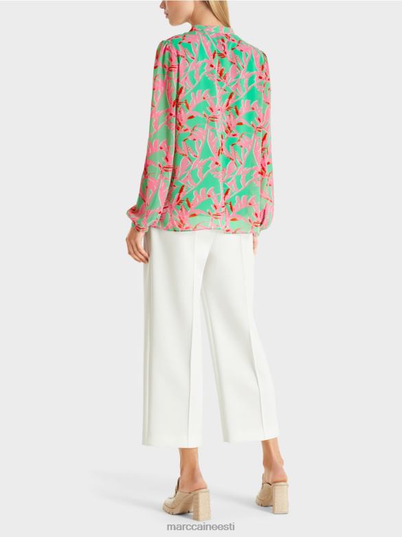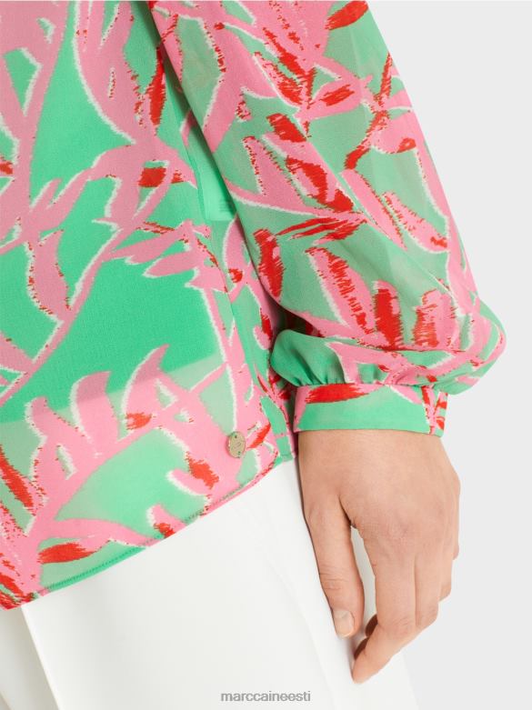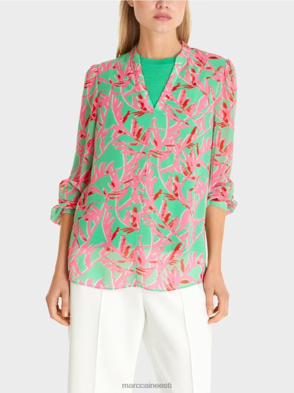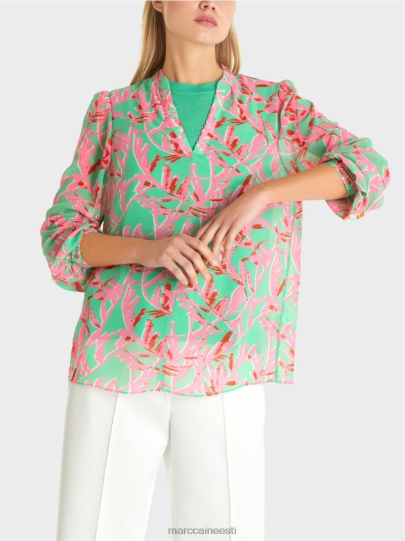 Pluus On Valmistatud õrnast, Poolläbipaistvast Materjalist Ning Pakub Kerget Ja õhulist Kandmismugavust. Lilletrükk On Pilkupüüdev. Kitsad Kätised Väikeste Helekuldsete Logonööpidega Rõhutavad Elegantset Välimust.