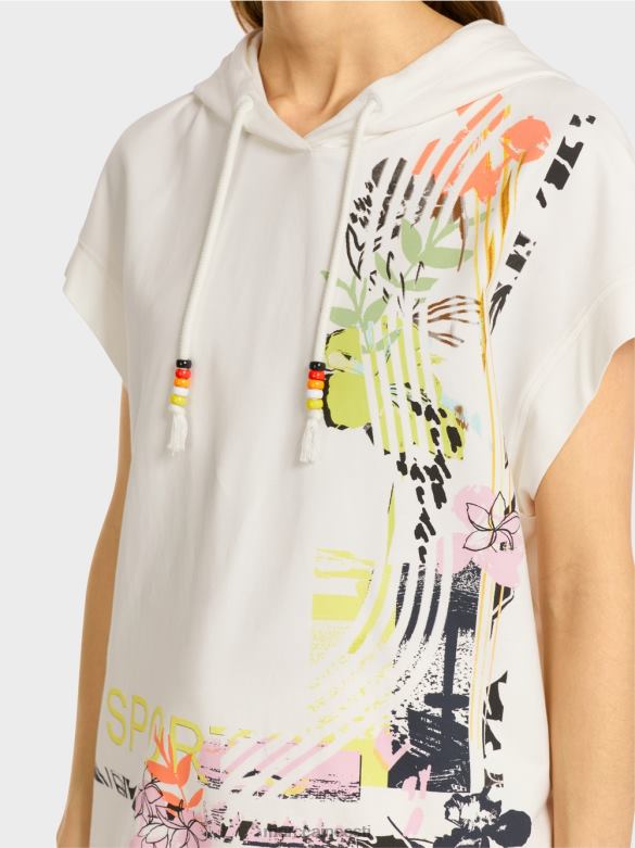 Sportlik Vabaaja Laiusega Puuvillane Kampsun. Värviline Lillemuster Vasakul Küljel Annab Sellele Kampsunile Mängulise Suvehõngu. Stiilsed Sõlmitud Narmad Juhuslikult Lõhiku Alläärel Annavad õhulise Lisandi. Langenud õlad Viivad Varrukateta Disainini. Suur Helmeste Nööriga Kapuuts Tagab Juhusliku Viimistluse.