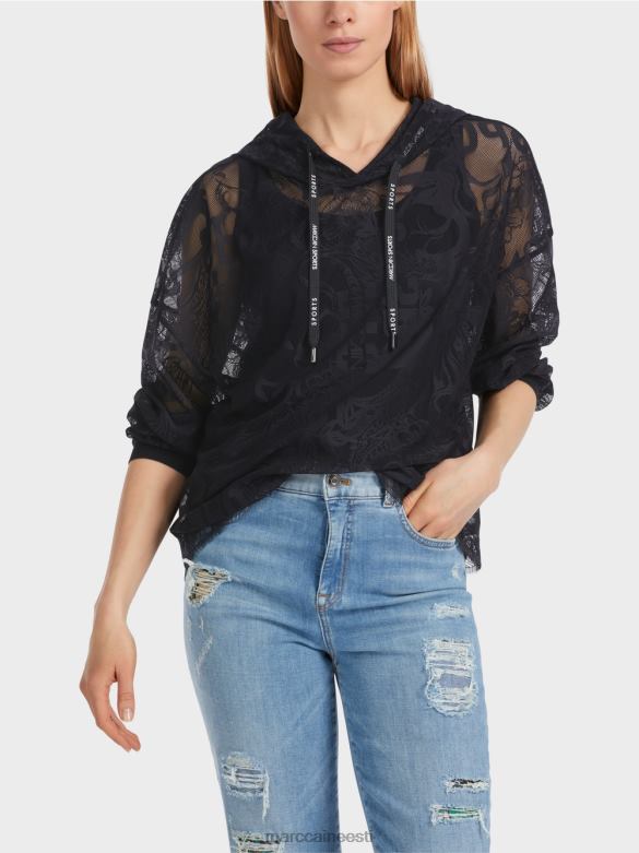 Dressipluus On Valmistatud Tüllpitsist. Motiiv On Inspireeritud Müstilistest Tätoveeringutest Ning Näitab Omavahel Põimunud Lilli Ja Draakonilaadseid Olendeid. Alläärel On õrn Pitsist ääris, Mida Kaunistab Marc Cain Kiri. Varrukad Kinnituvad Sooniku Mansetiga.