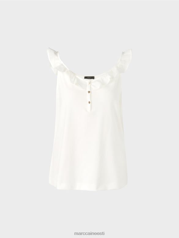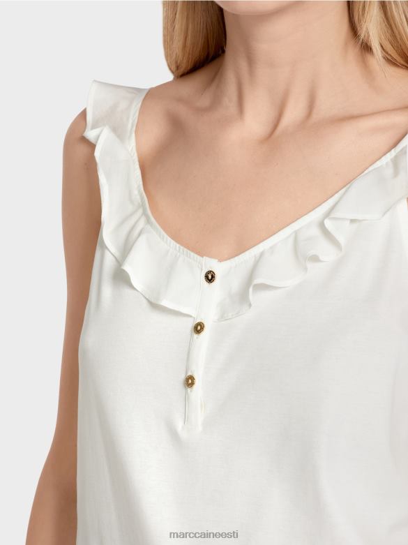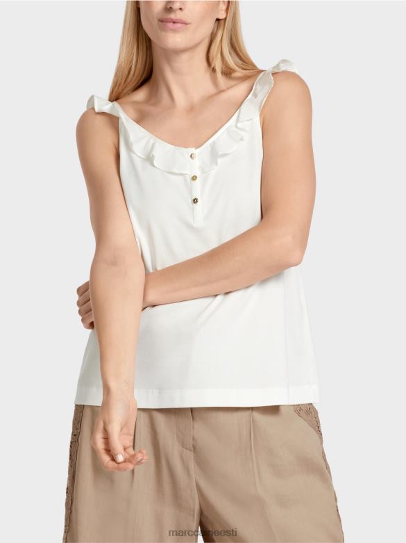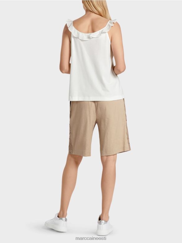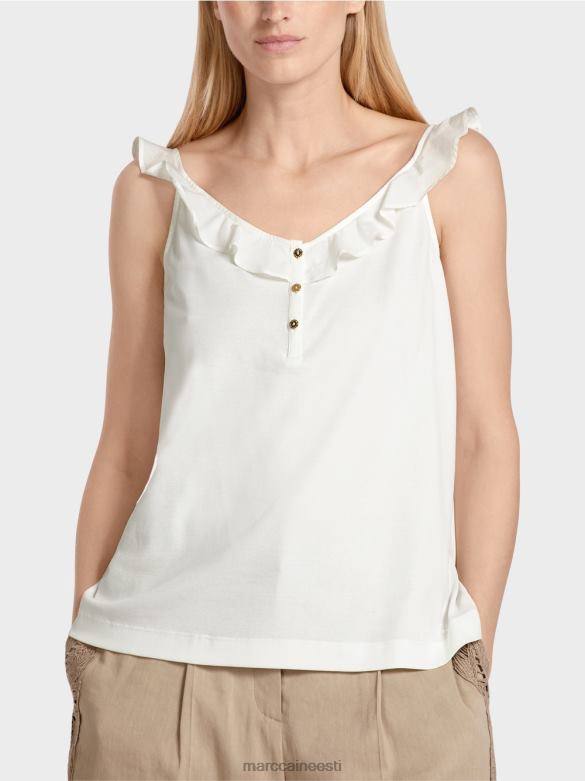 Keskne Funktsioon On Voldik, Mis Toimib Nii Krae Kui Ka Rihmana. See On Valmistatud Kergest Puuvillasest Riidest Ja Annab Topile õhulise Iseloomu. õrnade Kullavärvi Nööpidega Dekoratiivne Nööbikinnitus Sobib Selle Tükiga Suurepäraselt.