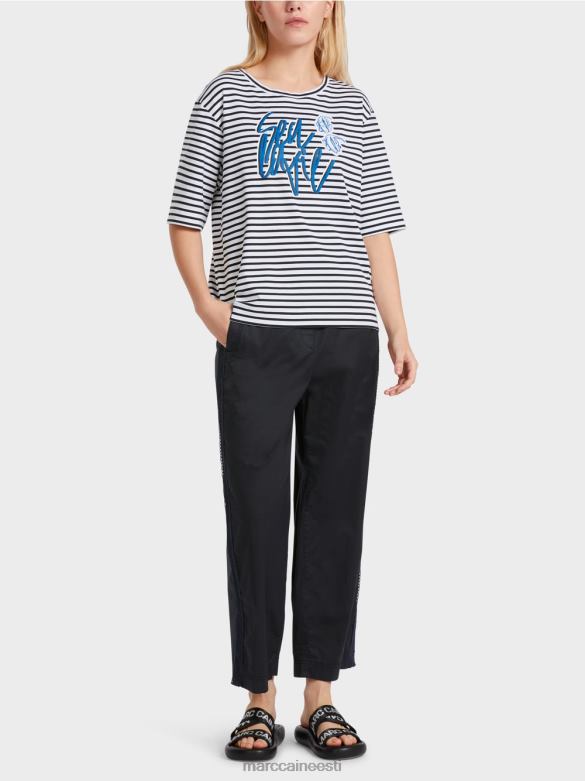 See Kergelt Veniv Puuvillane T-särk Lõdvestunud Triibulise Disainiga õhkab Suve Meeleolu. Hõngu Saadab Mänguline "merearmastuse" Avaldus. Särgil On Ka Avar Lõige Poolpikkade Varrukatega Ja Läbiv Kaelus.