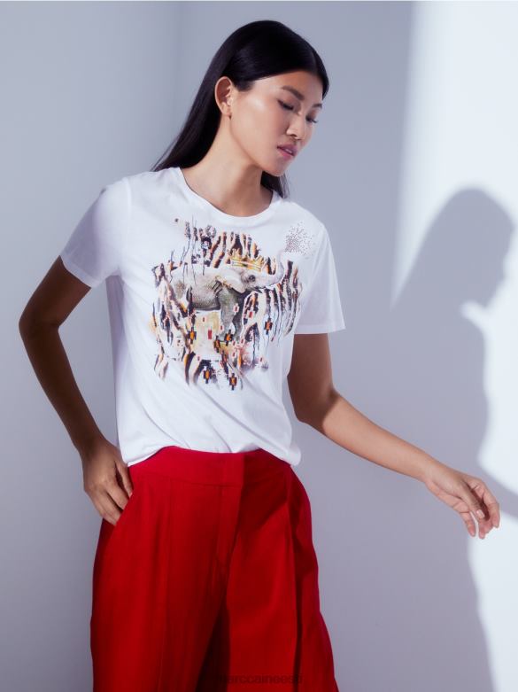 See T-särk On Valmistatud ülikergest Puuvillast. See On Klassikalise Lõikega Ja Selle Esiküljel On Kollaažkujunduses Motiiv. Motiiv On Kombinatsioon Troopilisest Faunast, Mis On Segatud Hajutatud Ikat-kujunditega. Aplikatsiooniga Kivid Ja Litrid Lisavad Pilkupüüdvaid Detaile.