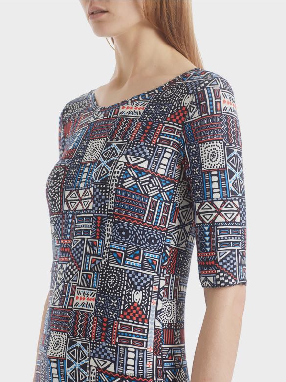 Särk On Trükitud Etnilise Mustriga. Puuvilla Ja Elastaani Materjalisegu Tagab Särgile Kõrge Kandmismugavuse. Esemel On Soonik Ja Poolpikkade Varrukatega.