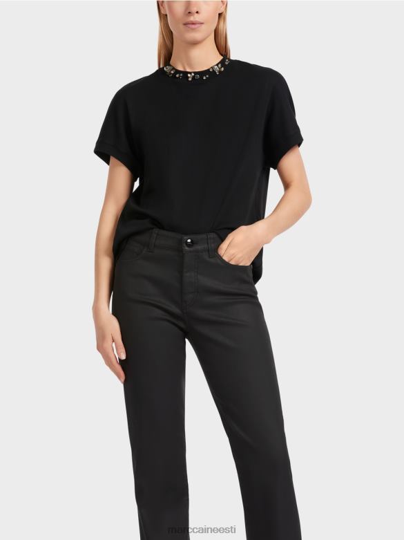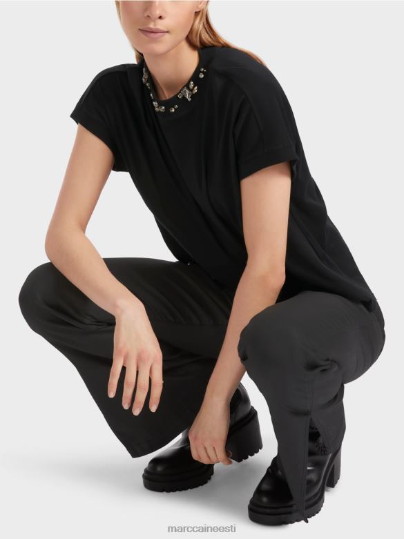 Puuvillast Avara T-särk. Selle T-särgi Pilkupüüdjaks On Püstkrae Läikiv Helmestik. Lõigatud Varrukatega Disain On Sama Ebatavaline. Sirge Siluett Toob Sellesse Naiselikku Topisse Annuse Juhuslikkust.