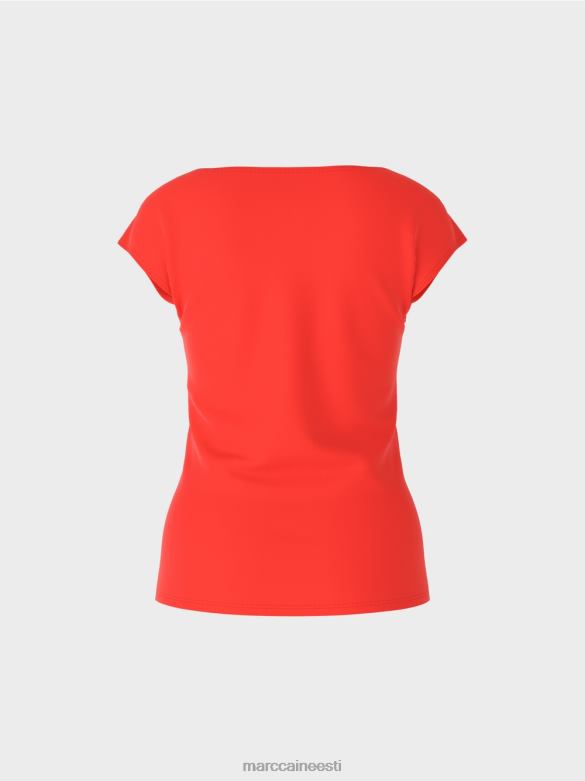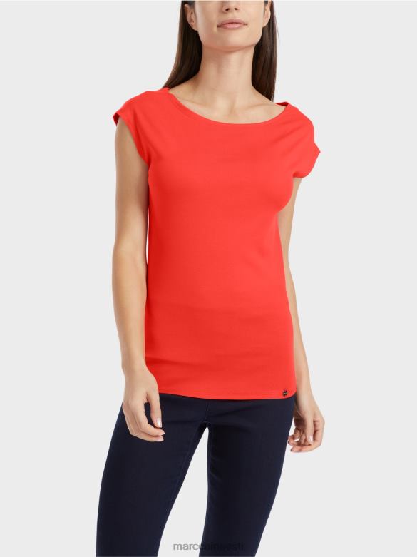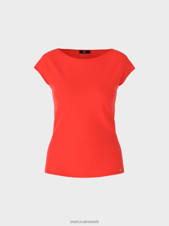 Liibuv T-särk Puuvillast Elastaaniga. Naiselik Hõng Tuleneb Laiast Kaelusest Ja Kärbitud Varrukatest.