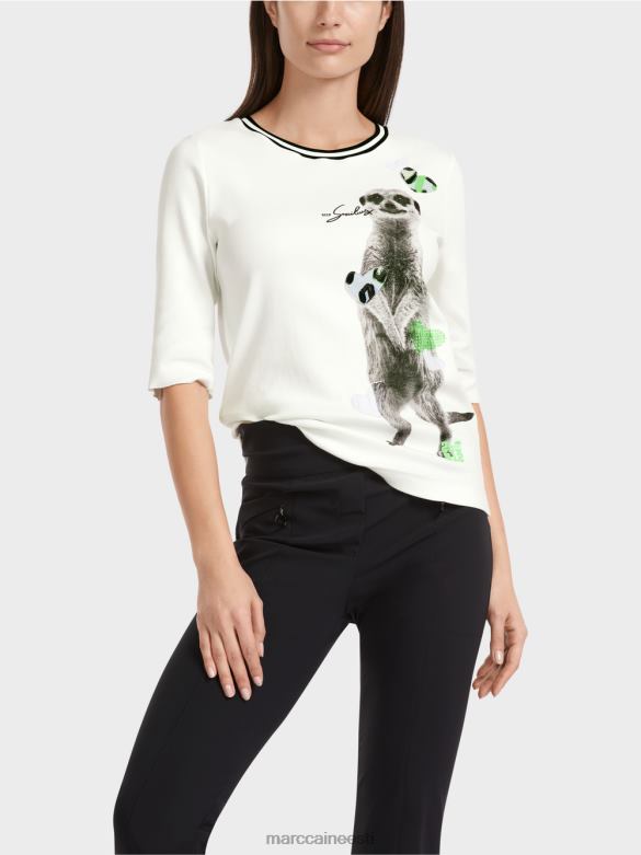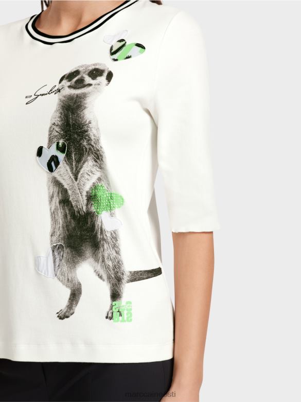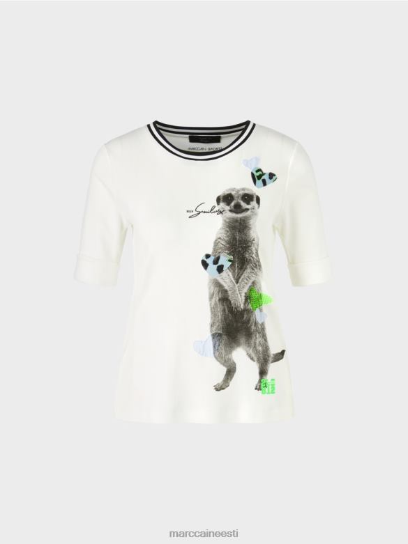 T-särk On Valmistatud Puuvillasest Soonikust Ja Sellel On Asümmeetriliselt Paigutatud Loomamotiiv. Trükk On Kaunistatud Võrk- Ja Trükitud Trikoo Aplikatsioonidega. Kaelus On Trimmitud Triibulise Soonikuga. -varrukas Lõpeb Lahtise äärisega Ja Sobib Voltimiseks.