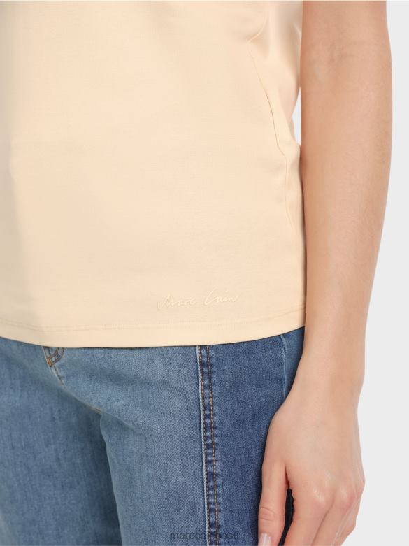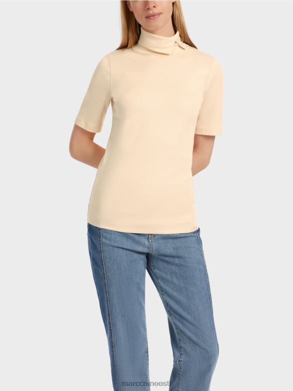 Valmistatud Mugavast Puuvilla Ja Elastaani Segust Kangast, See T-särk Rõõmustab Ka Tänu Oma Dekoratiivse Nööbiga Rulli Kaela. Tüüpilised Särgidetailid On Veerandpikkused Varrukad. ülaosa On Lõigatud Figuuri Lähedalt Ja Allääres On Kiri Marc Cain.