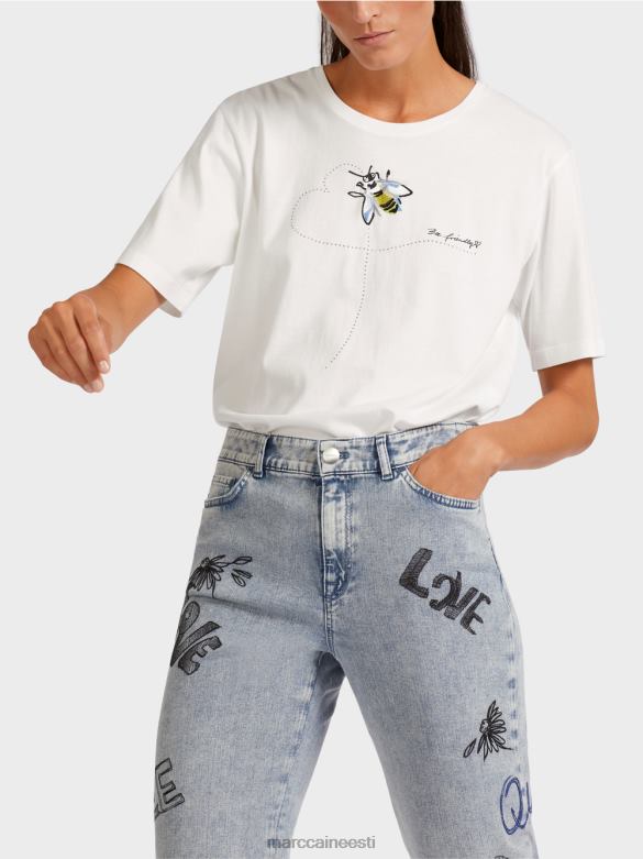 Pehmest Puuvillast T-särk. Valdavalt Klassikalises Disainis On Loovus Koondunud Armsasse 3D-elementidega Trükisesse: Mesilase Lennurada On Illustreeritud Kividega, Keha Aga Helmeste, Lõnga Ja Läbipaistva Kangaga.