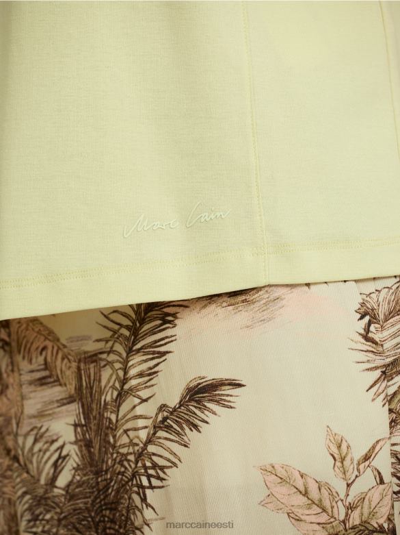 Pluusistiilis Topp Näeb Oma šiki Materjalide Seguga Suurepärane Välja. Esi- Ja Tagaosa On Elastsest Puuvillast Ja Mustrivarrukad Puuvillasest Riidest. Varrukaääred On Töötlemata Servaviimistlusega Ja On Kaetud õrna Pitsiga. Kaelus On õrna Puuvillase Kaunistusega.