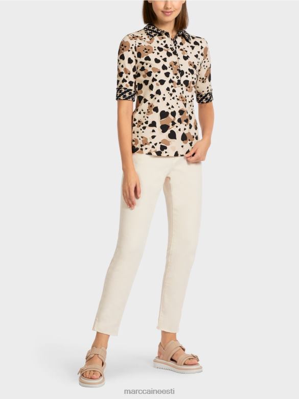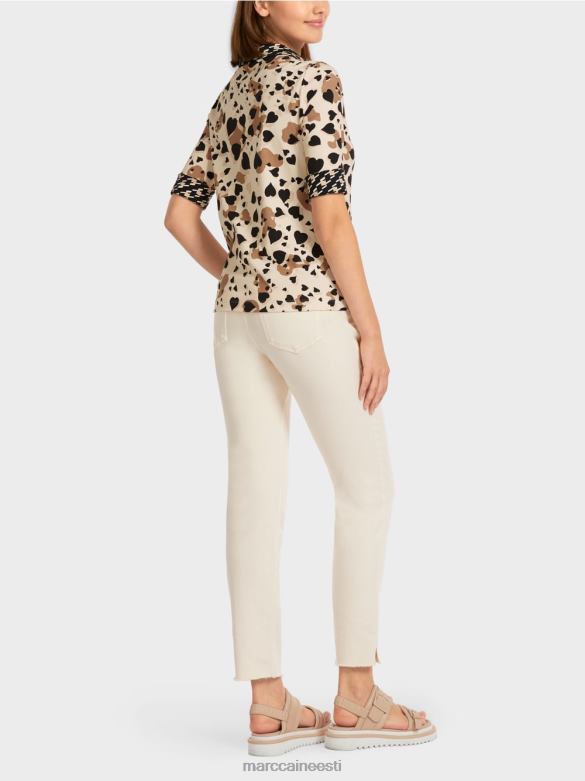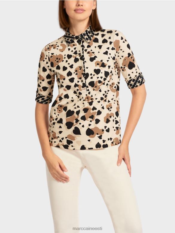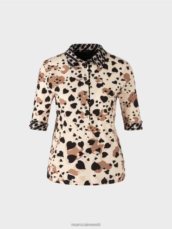 Kergelt Liibuv Särk Kontrastmustriga Polokaelusega Ja Nööbipaelaga. Sellel Polosärgil On Südamekujuline Leopardisain Ja Karjase Ruuduline Aktsent. See On Valmistatud Mugavast Sooniku Tekstuuriga Puuvillasest Trikoorist. Kolmveerandpikkused Varrukad Saab Juhuslikult üles Käärida. Südamekaunistus Nuppudel Lisab Kauni Lihvi.