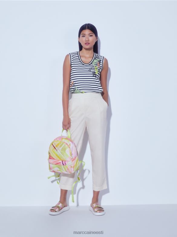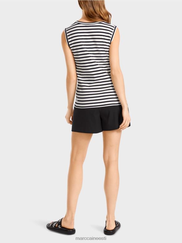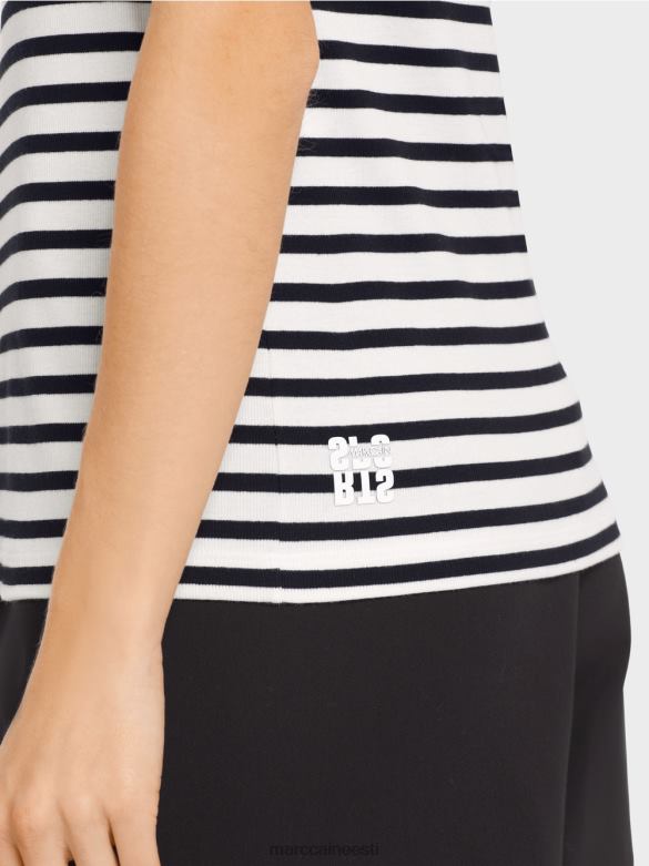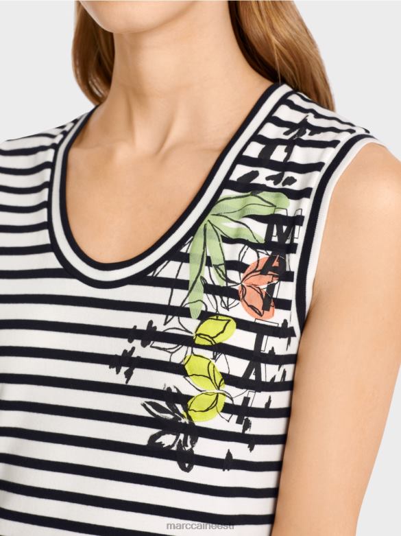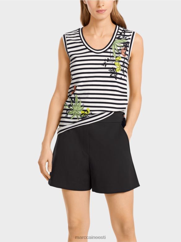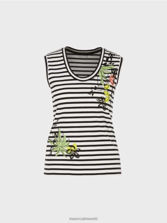 Figuuri Kallistav Elastsest Puuvillast Topp. Selle Triibulise Topi Merelisele Stiilile Annab Lilletrükk Naiselikku Hõngu. Lai Kaelus Ja Käeaugud On Seotud Triibulise Teibiga.