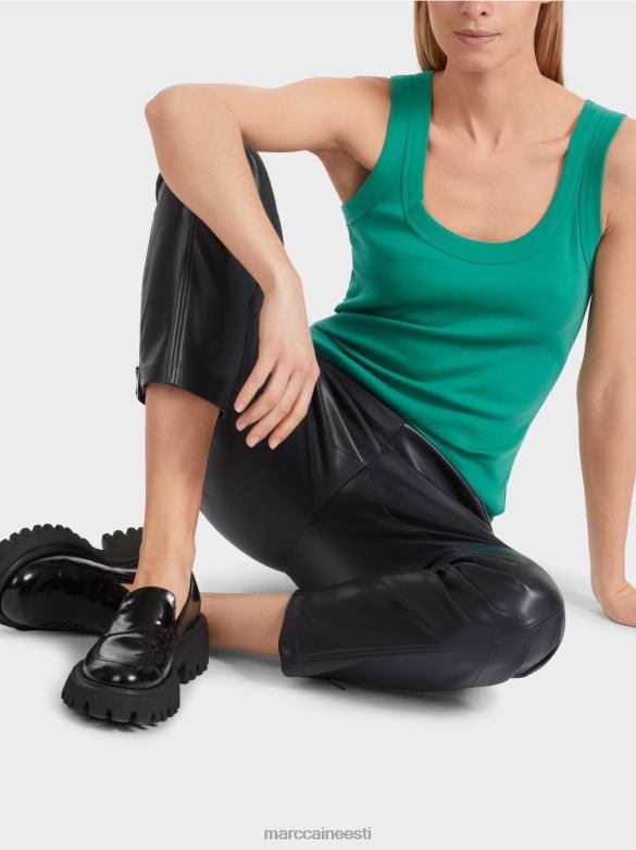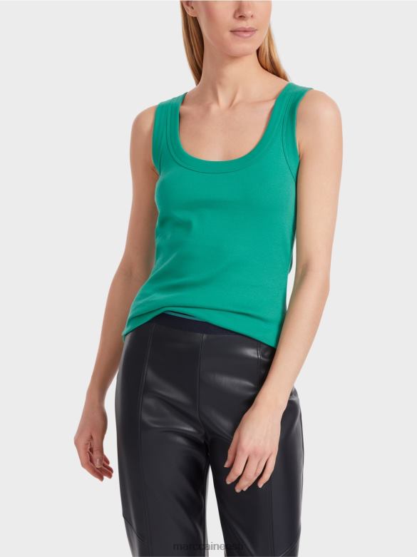 ülaosa On Valmistatud Elastsest Puuvillasest Ribist. Lõige On õhuke Ja Jersey-kujuline. ümar Kaelus On Suhteliselt Sügav Ja Lai. Silmatorkav: Lai Kaelus Ja Käeaugud.